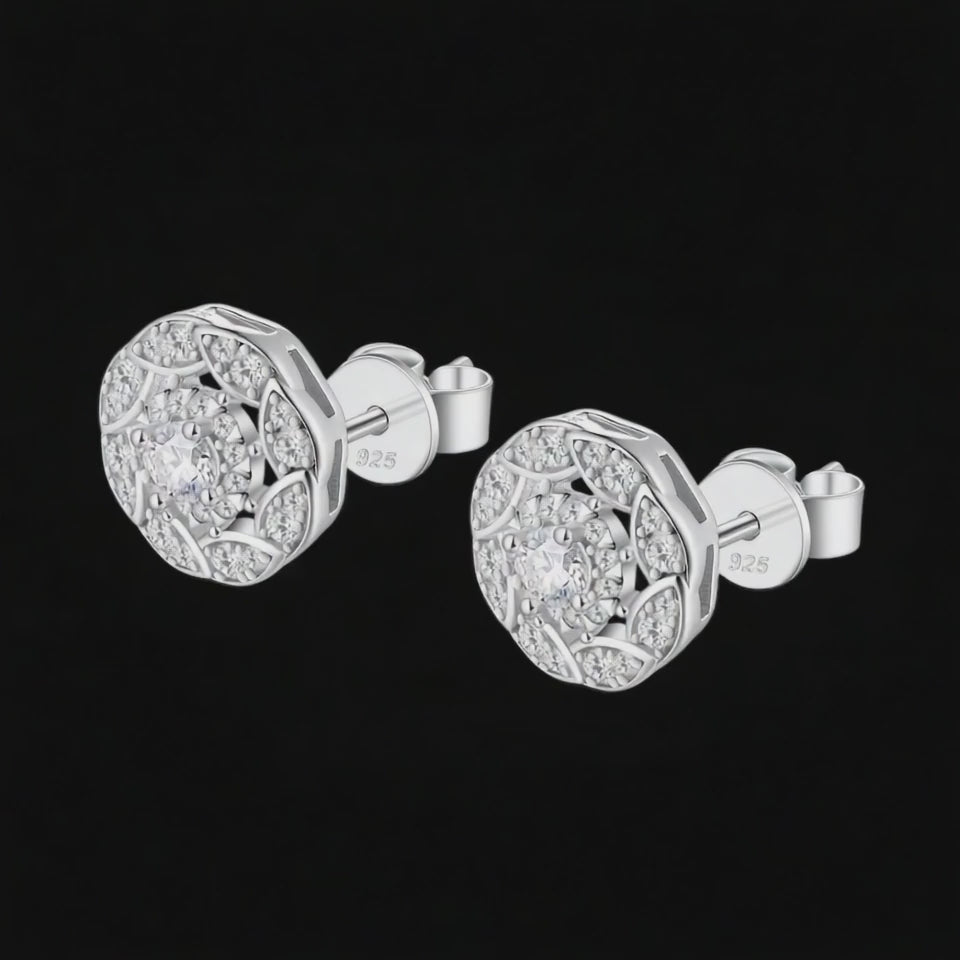 Elevate your style with the Imperial Glimmer earrings. Handmade in London from 925 sterling silver and sparkling moissanite, their elegant design adds timeless sophistication to any occasion. Comfortable, durable, and designed to shine.